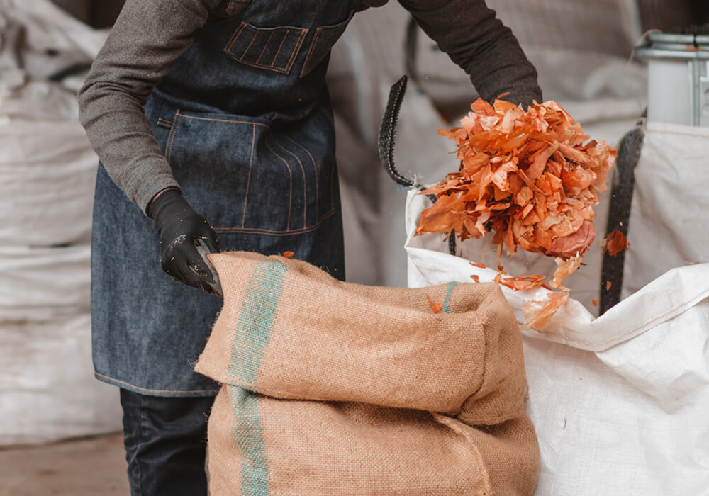 - Cascas de cebola, recolhidas por produtores da região, que de outra forma seriam desperdiçadas.